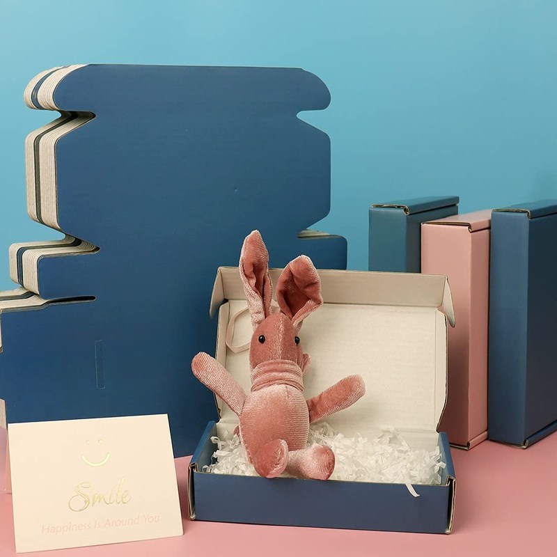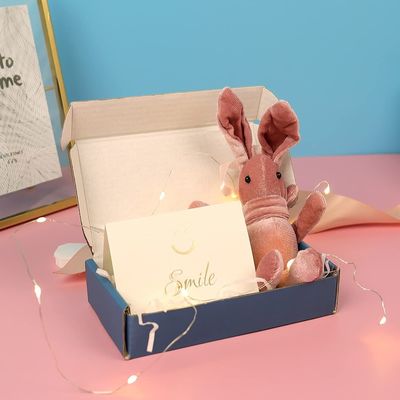 Το μπλε διπλώνοντας φλάουτο Ε ζάρωσε το κιβώτιο με το λογότυπο για τη στέλνοντας συσκευασία δώρων ταχυδρομείου