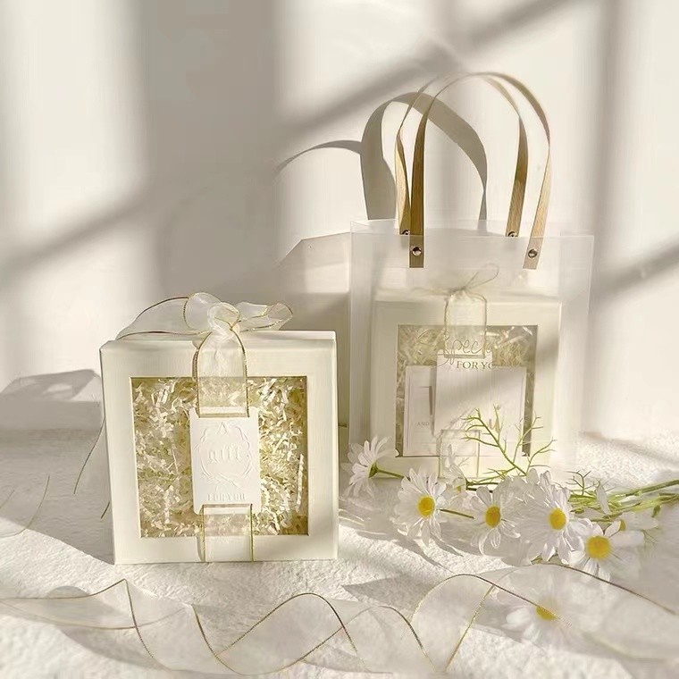 Άσπρο κιβώτιο δώρων της Kraft εγγράφου τέχνης με τη διαφανή λαβή κορδελλών εγγράφου παραθύρων για τη συσκευασία δώρων