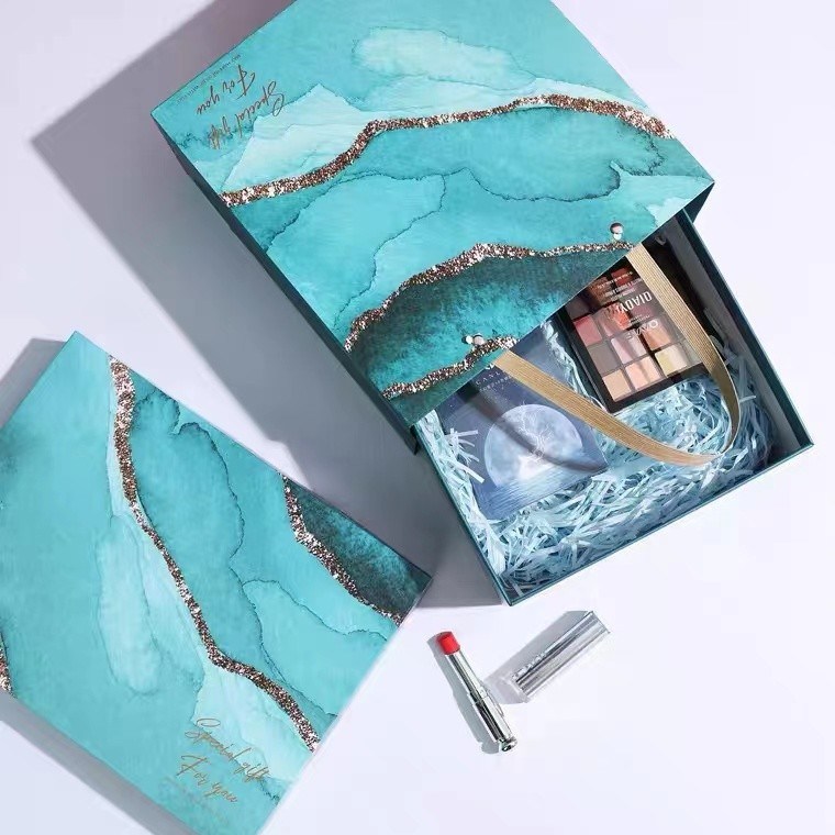 Μπλε τέχνης χαρτί συνήθειας κιβωτίων δώρων χαρτιού χαρτονένιο που συσκευάζει το άκαμπτες καπάκι και τη βάση για την καλλυντική συσκευασία δώρων