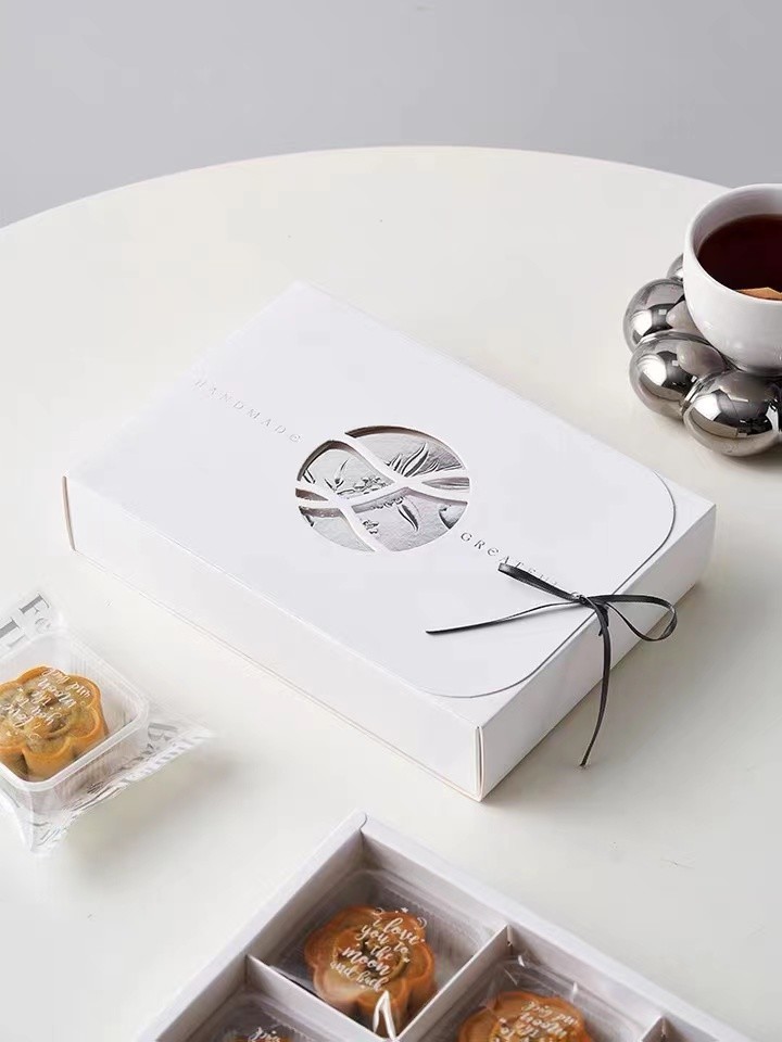 Στοιχείο: | Άσπρα κιβώτια δώρων ντυμένου εγγράφου πτυσσόμενα με τη λαβή κορδελλών για τη συσκευασία τροφίμων |